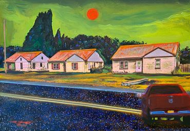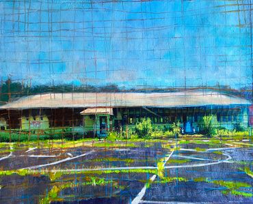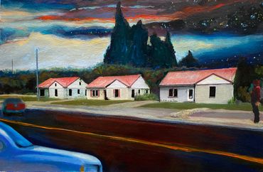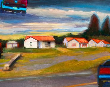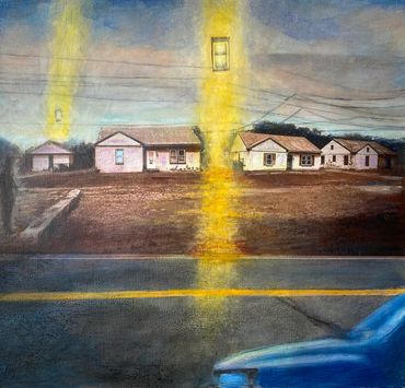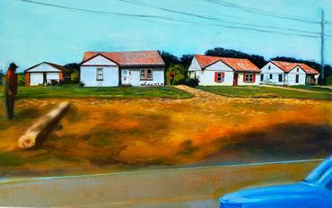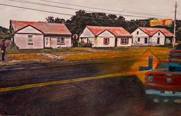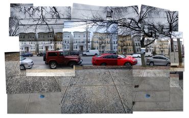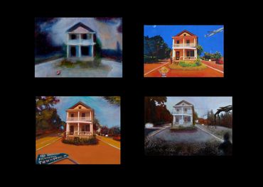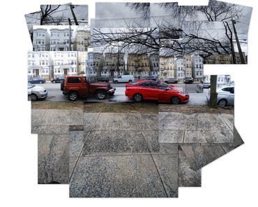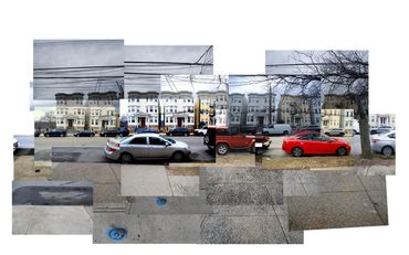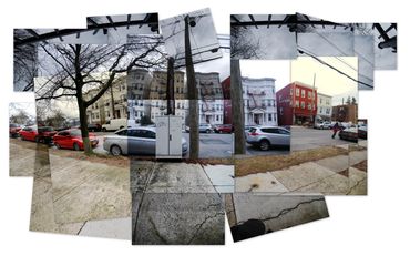 Inspired in part by the Hockney Retrospective at the Metropolitan Museum of Art, NYC, I created this series of works--the Warburton Series-- which focused on the already significant role photography and time play in my work. I took a walk down Warburton Ave. in Hastings and shot almost one thousand photos. I often collage photos as maquettes to paint from, but in this case, I created digital collages as final images.